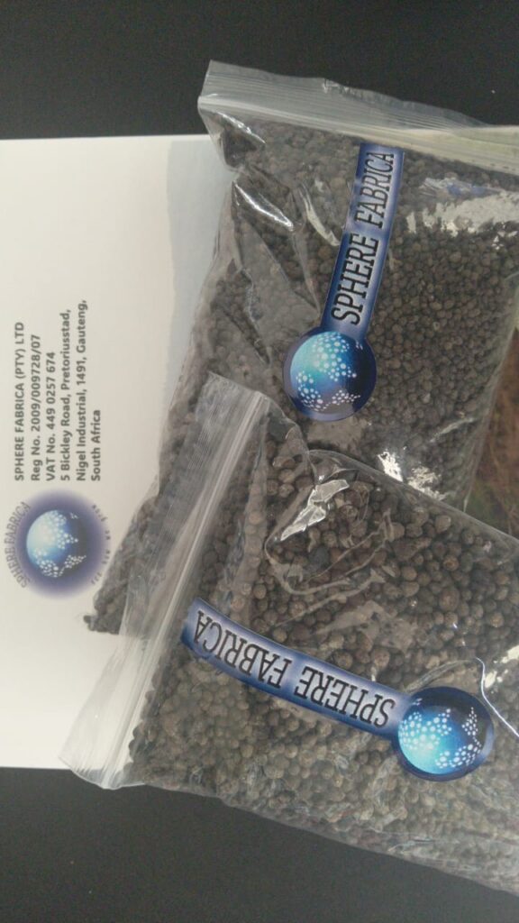 The product range undergoes a specialized processing procedure by Sphere Fabrica, which ultimately produces an extremely fine powder. The material is then processed into granules of 2-4,5 mm in size, offering a minimum cold-crushing strength of 3 kilograms.